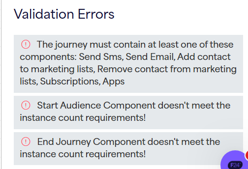"Start Audience/End Journey Component doesn't meet the instance count requirements!"