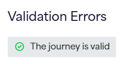 Once you have analysed and resolved any validation errors in your journey, we should see the lovely message below, and your journey will be ready to start!